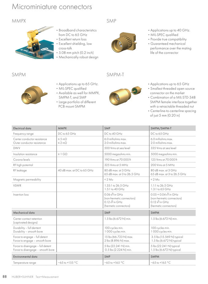 HUBER+SUHNER is a leading global provider of radio-frequency connectors for the trans-mission of analogue and digital signals and has many years of experience in the enginee-ring and production of coaxial connectors. In addition to a broad selection of standard connectors for a wide range of different applications, customer-specific solutions for the following connections are also developed and manufactured